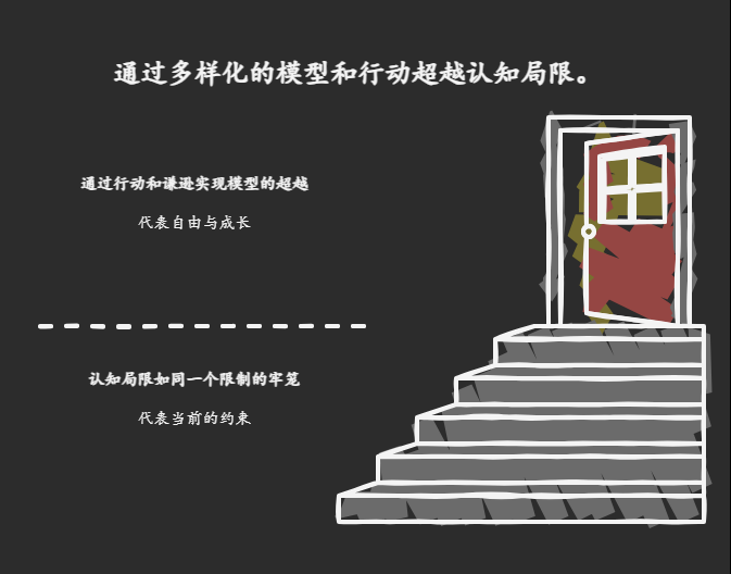 总之,思维模型是人类认知的必然产物,但它们也可能成为认知的囚笼。通过构建多元化的“模型生态”,保持谦逊和开放的心态,以及在行动中不断学习,我们可以突破认知局限,最终达到用模型超越模型的境界。