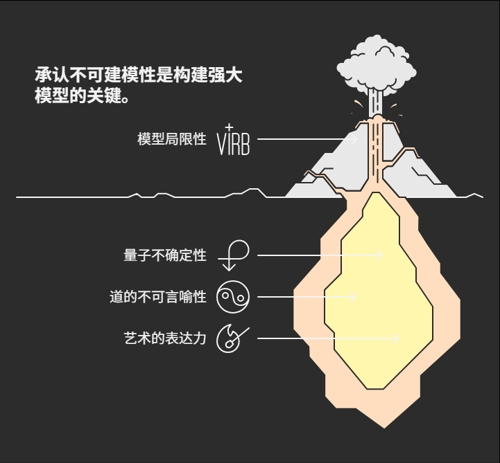 伟大的科学模型(如量子理论)会明确标注“测不准”;东方哲学中的“道可道,非常道”直指语言模型的边界;艺术则用意象表达逻辑无法抵达之地。这意味着我们需要在构建模型的同时,保留对“不可建模性”的敬畏,承认存在着我们无法完全理解和控制的领域。