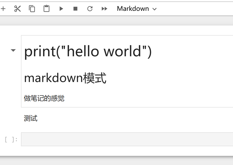 - Markdown跟做笔记一样,主要是写一些说明(写完之后记得按Ctrl enter,文本才会进入预览模式)