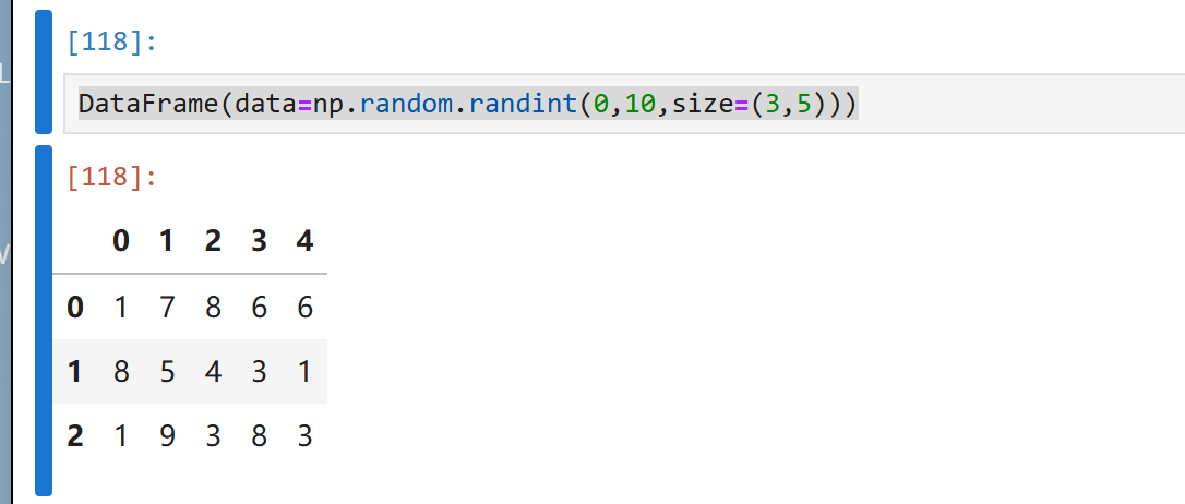 df=DataFrame(data=np.random.randint(0,10,size=(3,5)),index=['tom','lucy','jack'],columns=['语文','英语','数学','物理','化学'])