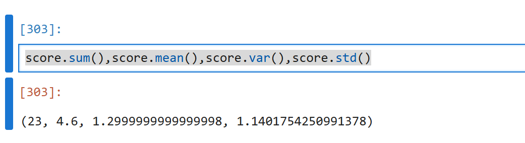 score.sum(),score.mean(),score.var(),score.std()