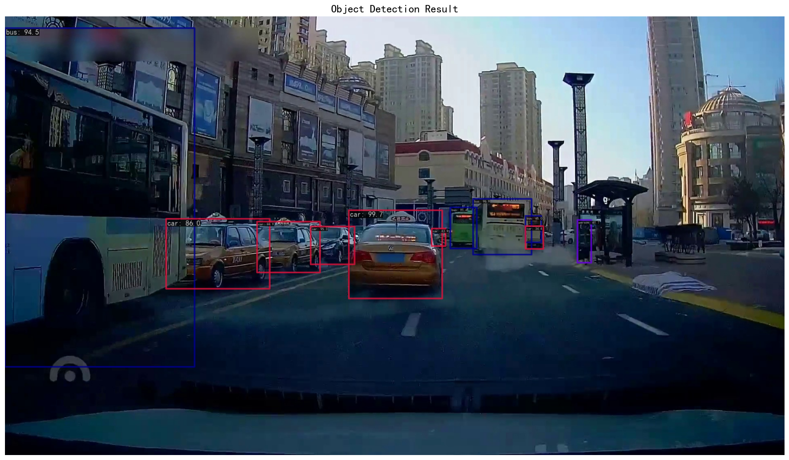 - 大目标检测效果较好: 汽车、公交车等大尺寸物体检测准确率较高